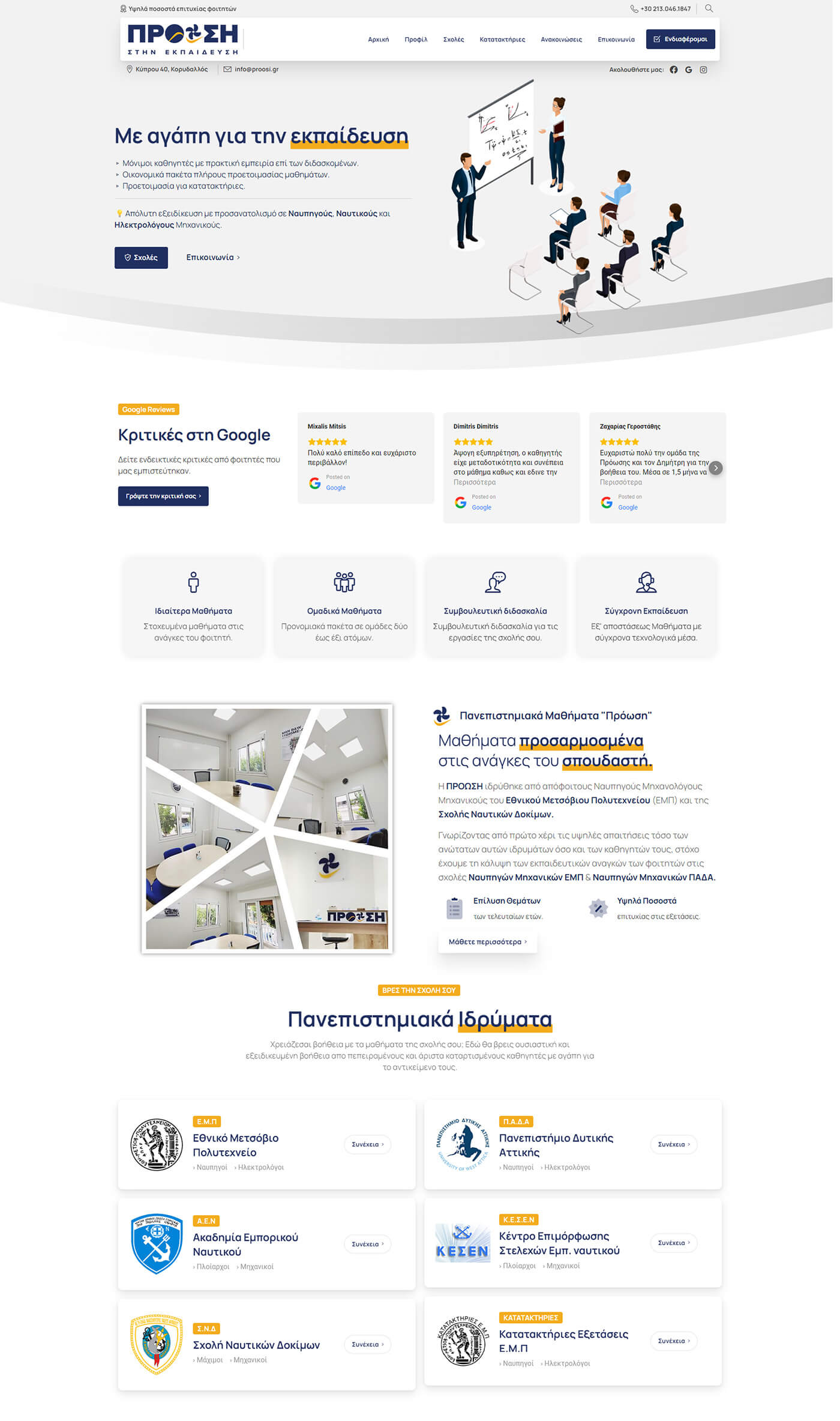 Κατασκευή ιστοσελίδας για πανεπιστημιακό φροντιστήριο με εντυπωσιακό σχεδιασμό.